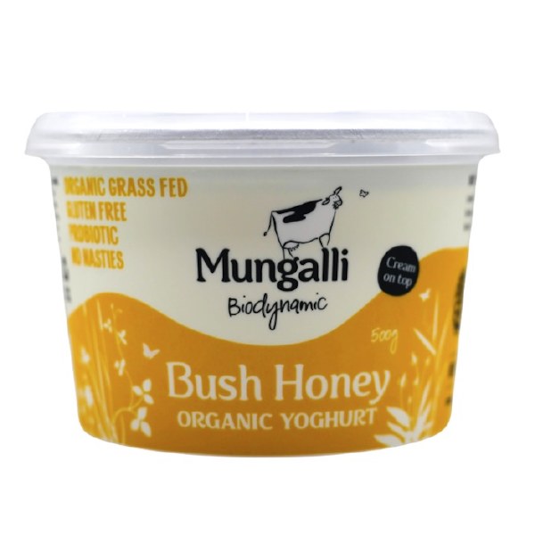 Mungalli Bush Honey Yoghurt is made with rich biodynamic milk and locally sourced bush honey from the Cairns region. This is a pot-set yoghurt, gently tub-set to create a delicate curd, with the cream rising naturally to the top thanks to our unhomogenised milk.